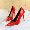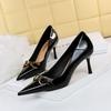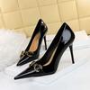 Women's Party High Heels Patent Leather Pointed Toe Pumps with Metal Buckle Decor Slim Stiletto Dress Shoes for Women