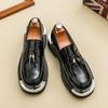 Classic Men Loafers Black White Men Thick-soled Durable Casual Comfortable Fashionable Fringed Shoes Social Shoes Sizes 38-46
