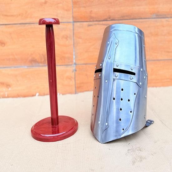 The Templar Knights were among the most iconic warriors of the medieval age, known for their white mantles adorned with a red cross, representing purity and devotion. This Templar Crusader Helmet pays tribute to their bravery and loyalty. It reflects the design of helmets worn during the 12th to 14th centuries, offering a glimpse into the past while maintaining modern comfort and craftsmanship.