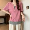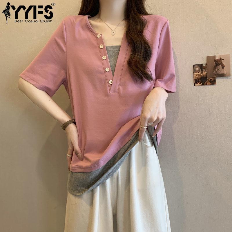 YYFS Women's Fashion Casual Summer Spring Colour Block Print Short Sleeve V-Neck Blouses & Shirts