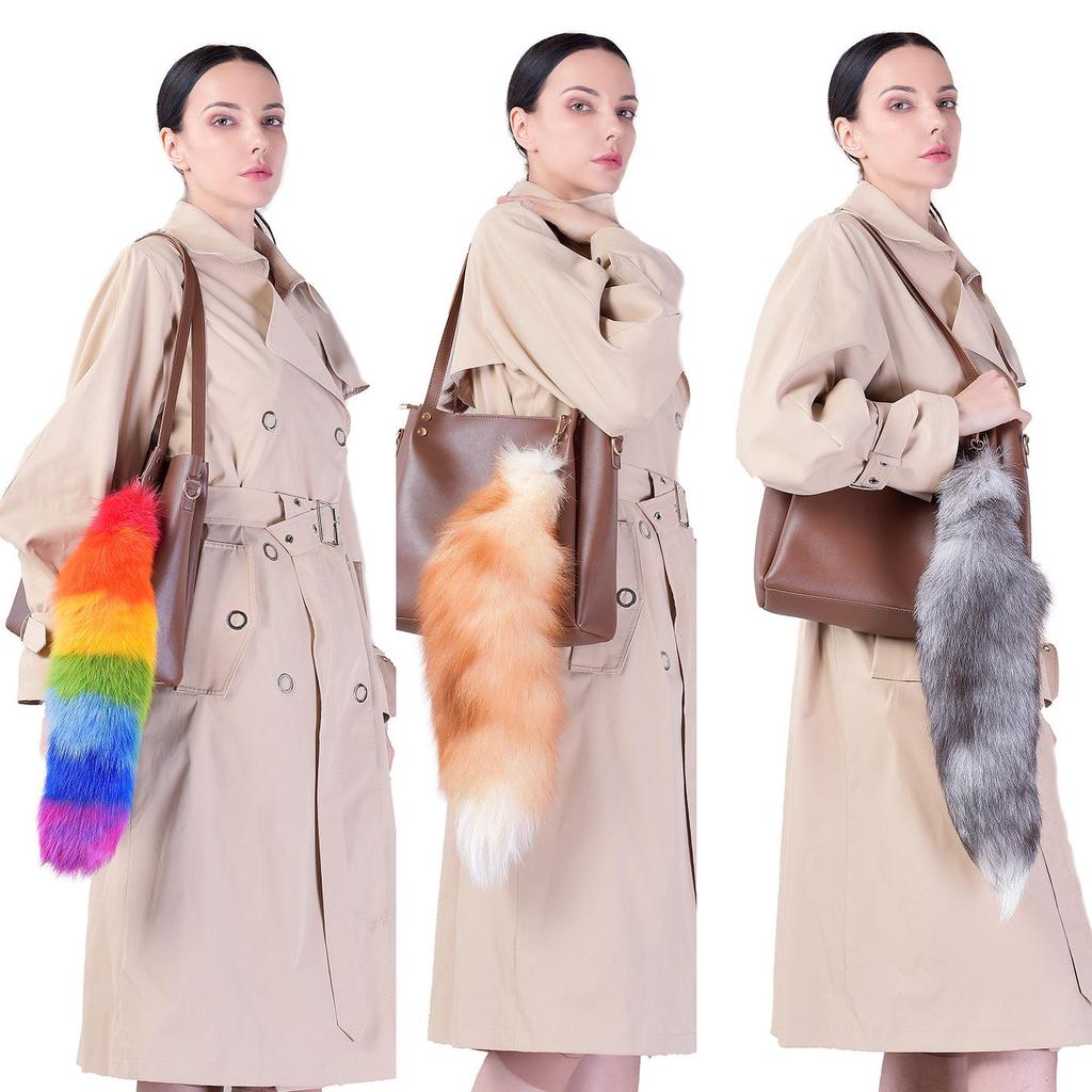 Silver Blue Real Fox Fur Pendant Charm - Women's Bag Accessory & Car Keychain