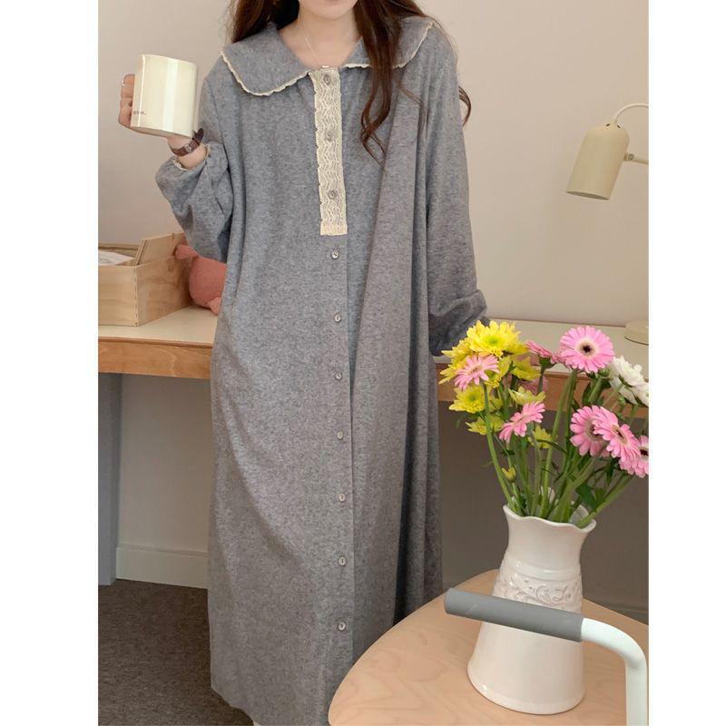 Lace-Trim Maternity Nightdress for Spring & Autumn - Women's Sweet & Loose Pajamas, Plus Size, Wear Inside or Out