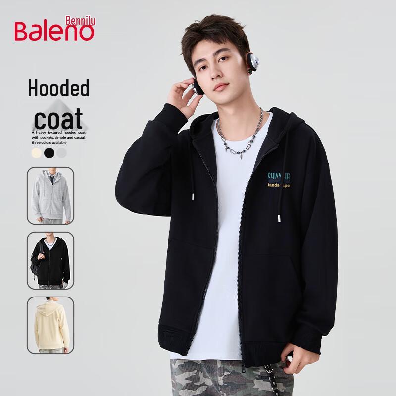 Baleno Unisex Letter Print Hooded Cardigan Sweatshirt