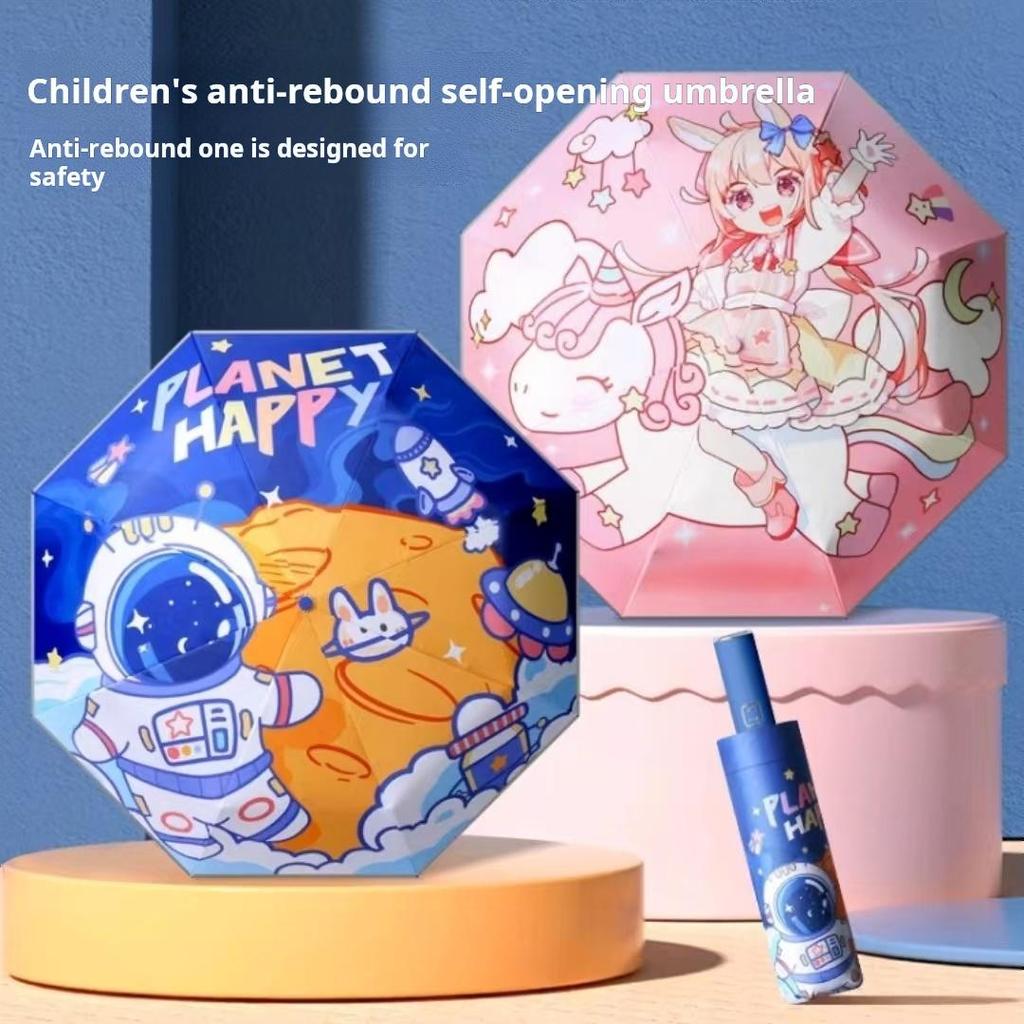 Children's Automatic Safety Umbrella with Anti-Rebound Mechanism, All-Weather Sun & Rain Protection