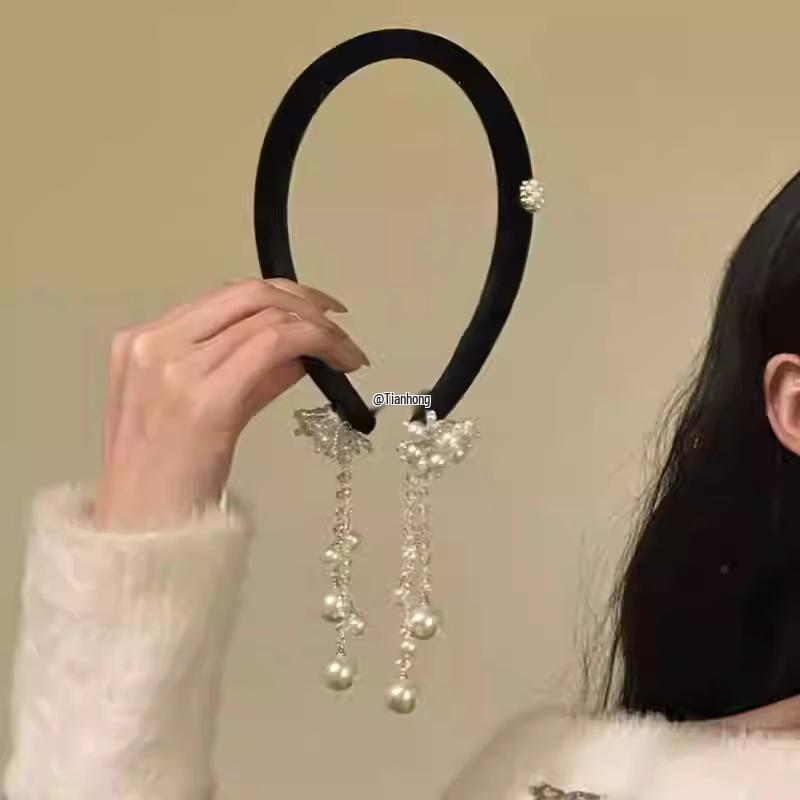 Charming Socialite Pearl Tassel Headband - Ethnic & Feminine Light Luxury Accessory