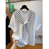 2025 Unisex Plus Size Striped Hooded Color Block Short Sleeve T-Shirt