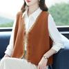 Lace-Trimmed V-Neck Knit Sweater Vest - Women's Spring/Autumn Fashionable Sleeveless Cardigan for Middle-Aged Moms
