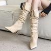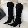 Eilyken Sexy Thin High Heels Pointed Toe Women Knee-High Boots Designer Winter Pleated Turned-over Egdes Banquet Prom Shoes