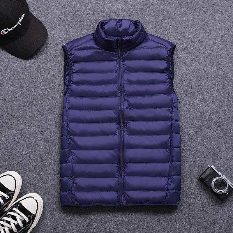 Introducing a sleek and stylish addition to your wardrobe, the Men's Slim Fit Lightweight Down Vest from the 2025 Collection. Crafted for plus-size individuals, this sleeveless vest offers a modern slim fit silhouette and features a stand collar for an extra touch of sophistication. Filled with premium duck down, it ensures excellent insulation without the bulk, making it the ideal choice for layering in cooler weather. The vest is designed with a solid pattern and constructed from durable polyester, offering both comfort and lightweight wearability. Perfect for those who prefer a minimalist and versatile look, this vest is a must-have for any contemporary gentleman's outerwear collection.