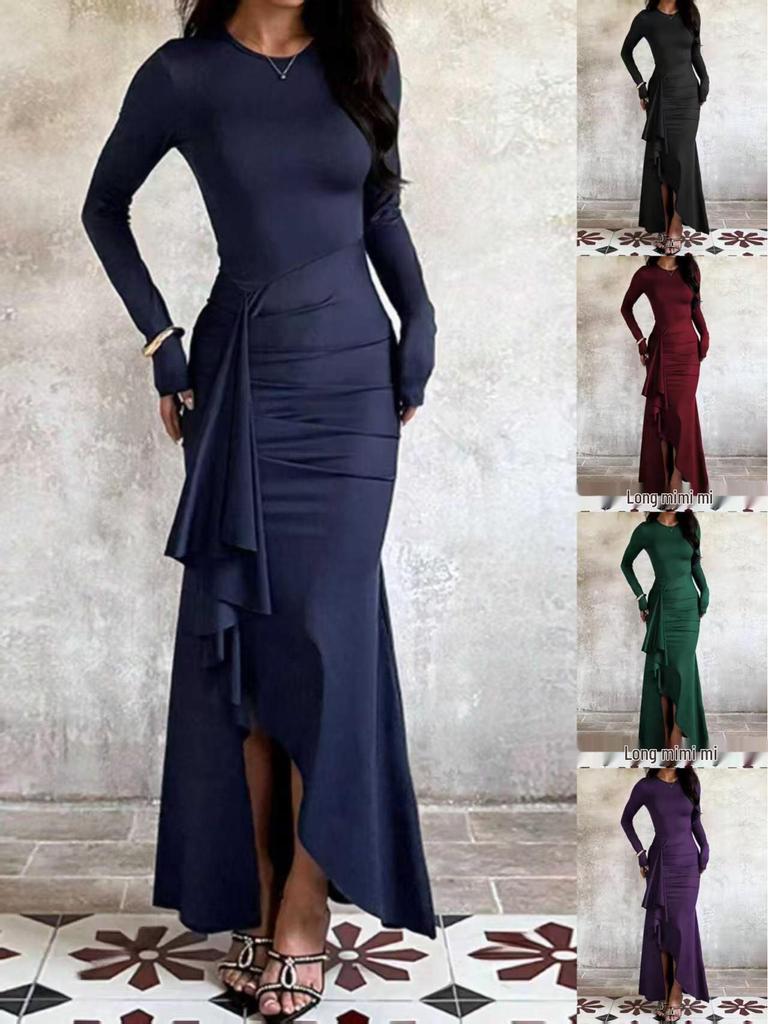Women's Long Sleeve Ruffle Dress - Autumn Bridesmaid or Wedding Party Gown
