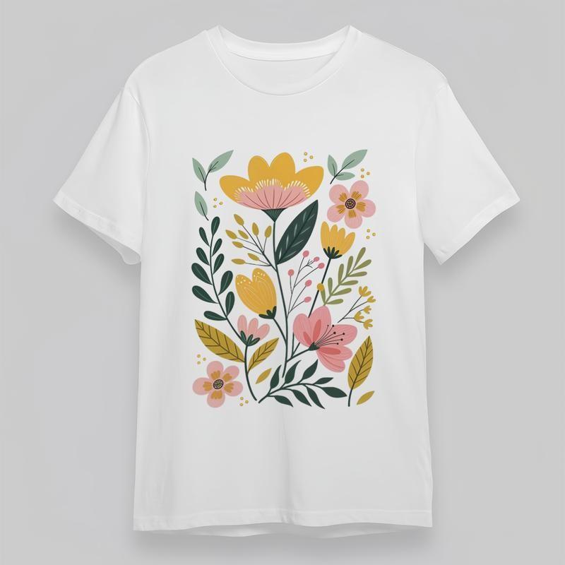 Women's Oversize Soft Classic T-Shirt Colorful Floral Bouquet Graphic Cotton Tee