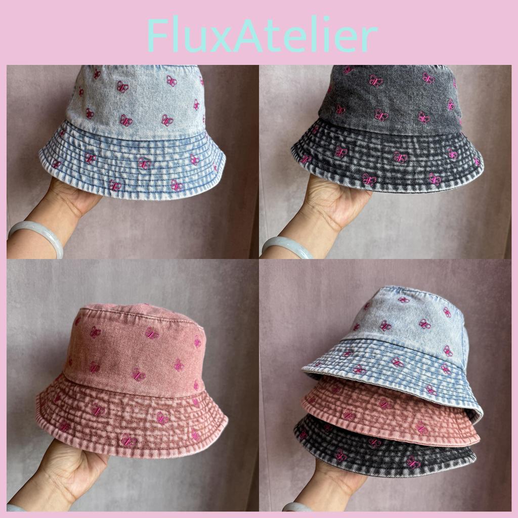 Summer Bucket Sunshade Hat Cotton Denim Material And Embroidered Cartoon Women