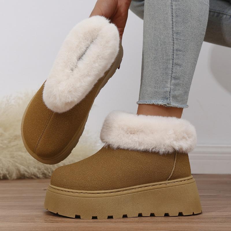2025 New Plus-size Wool Cotton Shoes Women's Winter Platform Muffin Fleece Warm Wedge Short Snow Boots