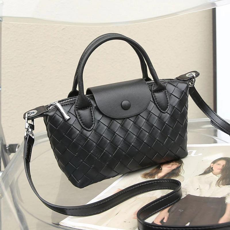 2025 New Women's Bag Niche Design Spring Summer Korean Version Versatile Fashion Cowhide Woven Women's Handbag Single Shoulder Small Dumpling Bag