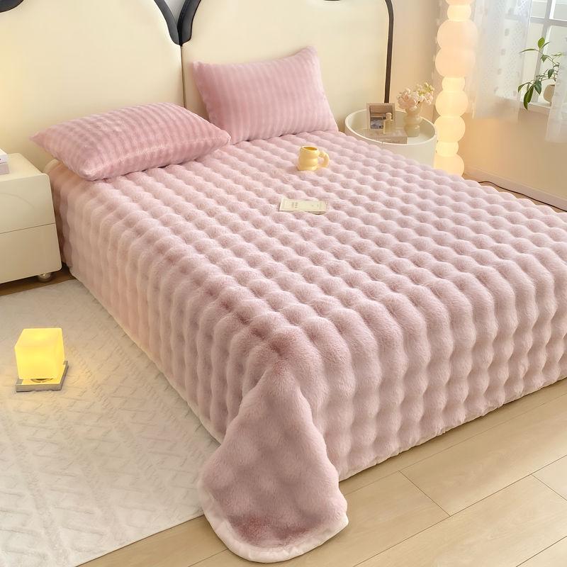 Plush Winter Bubble Rabbit Velvet Fleece-Lined Warm Bed Sheet