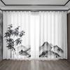 2Pc Home Decoration Curtains, Elegant Bamboo Ink Painting With Pole Bag Curtains, Kitchen, Coffee Shop, Living Room, Balcony