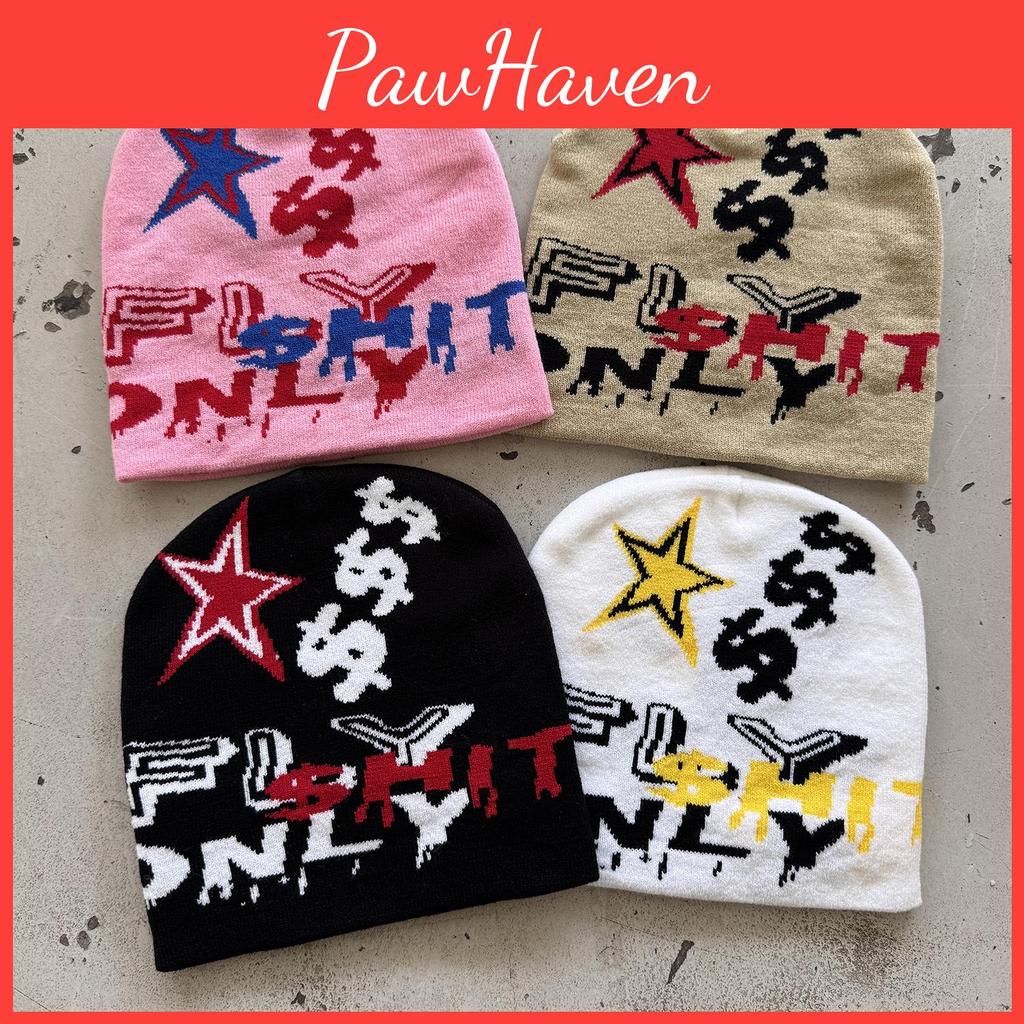 Fashion Hat Knit With Star And Letter Embroidery Design For Seasons Cold
