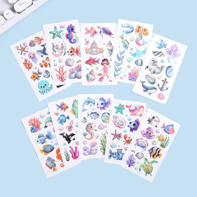 10pcs Cartoon Mermaid Temporary Tattoo Stickers Kids Girls Mermaid Theme Birthday Party Favors Decoration Pinata Filler Toy Gift