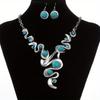 Vintage Boho Turquoise Zirconia Jewelry - Alloy Necklace and Drop Earrings Combo for Daily and Banquet Occasions