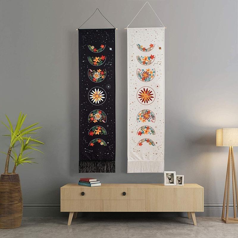 1/2Pcs Black and White Moon Sun Wall Hanging Tapestry Bohemian Decor Floral Throw Blanket Home Wall Art Room Decor
