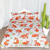 Girls Cartoon Fox Duvet Cover Set Cute Fox Bedding Set Kawaii Animals Comforter Cover Botanical Floral Bedspread Cover Full Size