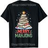 Merry Mahjong Christmas Tree Funny Holiday Game Lover T Shirts Men Humor Streetwear Tee Shirt Short Sleeve Unisex Loose Clothing