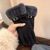 Suede Outdoor Cycling Gloves Winter Warm Five-finger Gloves Retro Touchscreen Gloves