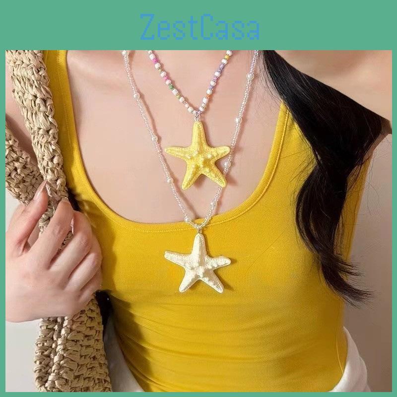 This beach-inspired resin starfish pendant necklace features a lightweight alloy charm accentuated with resin and beaded detailing. The necklace is ideal for summer vacations, beach outings, or casual outings.Wipe clean with a damp cloth to maintain its vibrant colors.