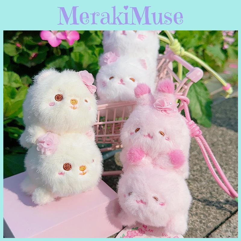 Sakura Season Cat Bear Rabbit Animal Plush Keychain With Hanging Strap For Bag Decor