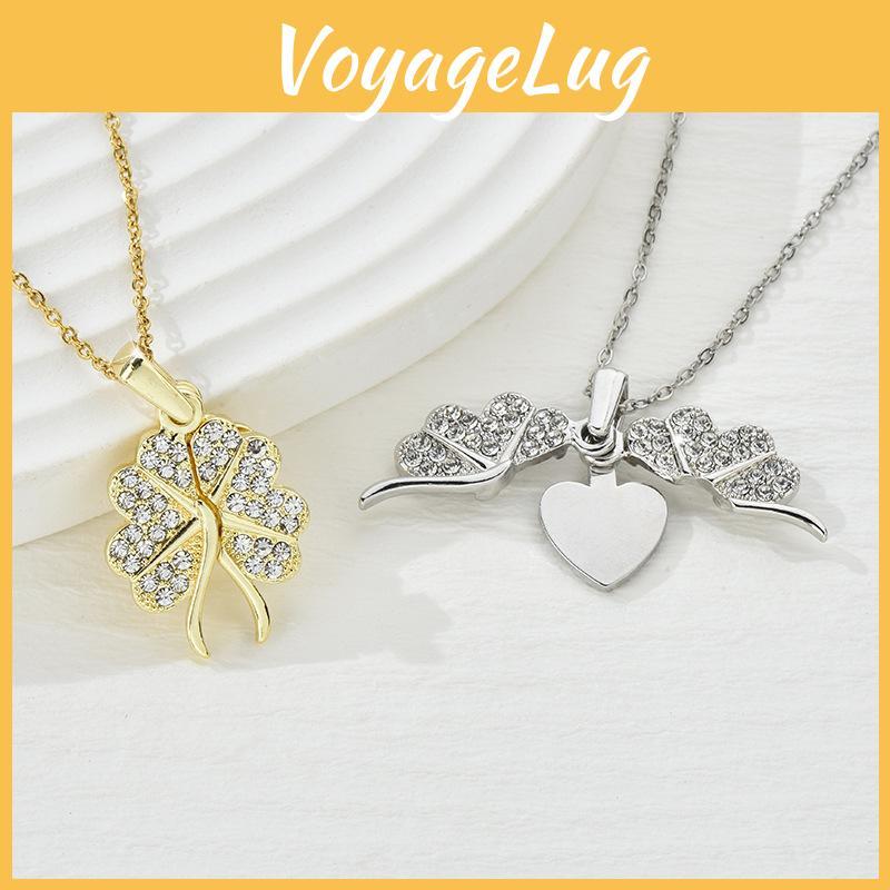 Stylish Openable Clover Pendant Necklace For Women Featuring Heart And Wing Design