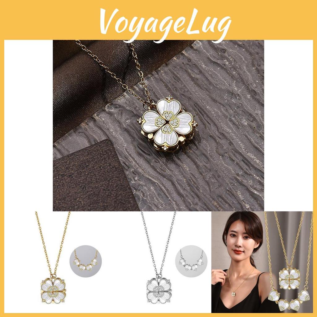 Elegant Titanium Steel Four Leaf Clover Heart Necklace For Women Short Luxurious Design Locking Collar Chain
