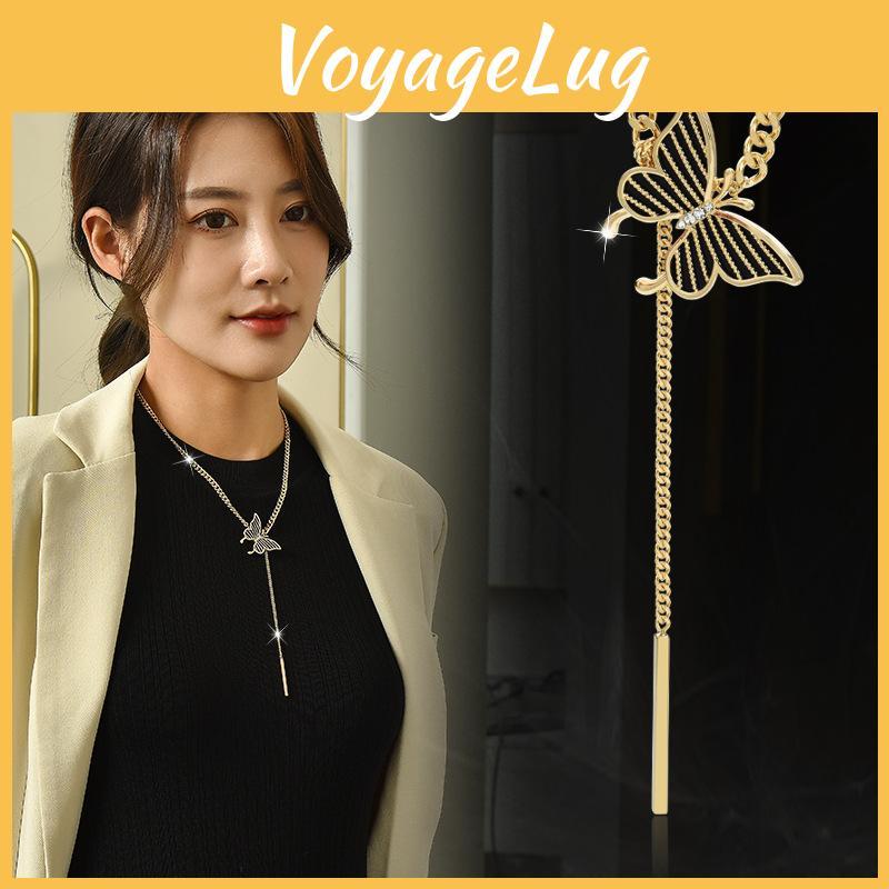 Elegant Butterfly Pendant Necklace For Women Stylish Layered Sweater Chain In Gold Silver