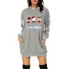Women's Christmas Print Long-Sleeved Hooded Pocket Pullover Dress