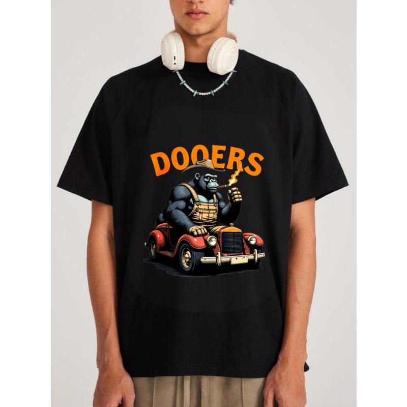 Cotton T Shirt White Monkey Driving Car with Cigar and Doovers Text Graphic Print Casual Wear for Men Streetwear Fashion