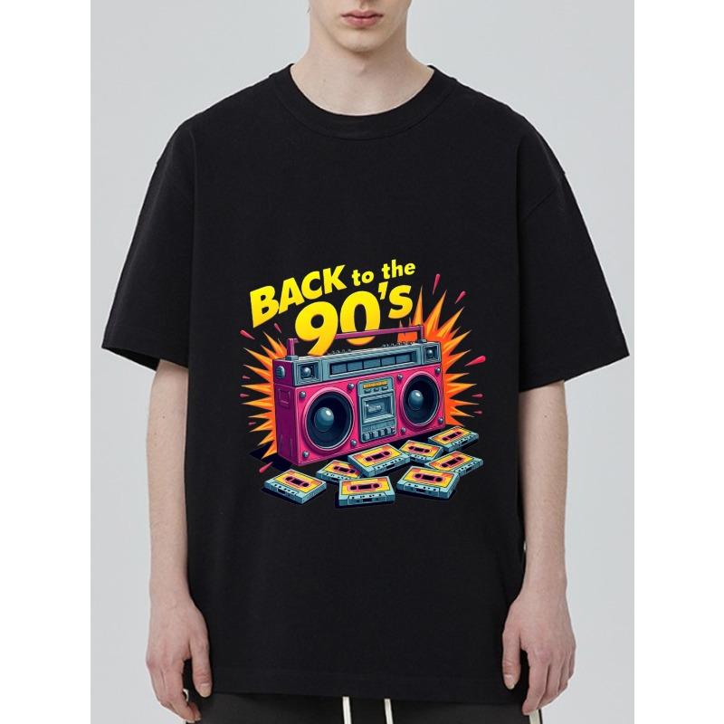 Back To The 90s T Shirt Black Boombox and Cassette Tape Print Retro Party Wear