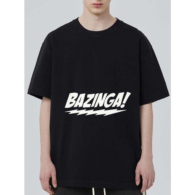 Black T Shirt with Bazinga Text and Lightning Design for Casual Wear