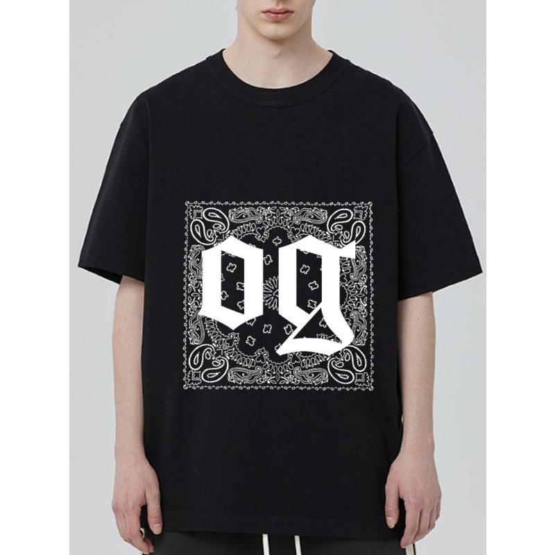 Og Bandana Print T Shirt Black White Lettering and Pattern Design for Casual Wear