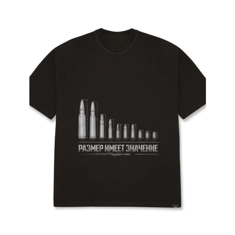 Men's Oversized T-Shirt Black Bullet Caliber Chart Print With Russian Text Size Matters Statement Graphic Streetwear Casual Wear