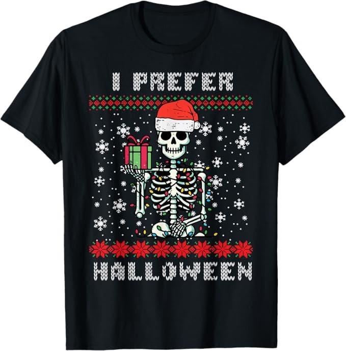 Christmas Skeleton I Prefer Halloween Ugly Xmas Men Women T-Shirt