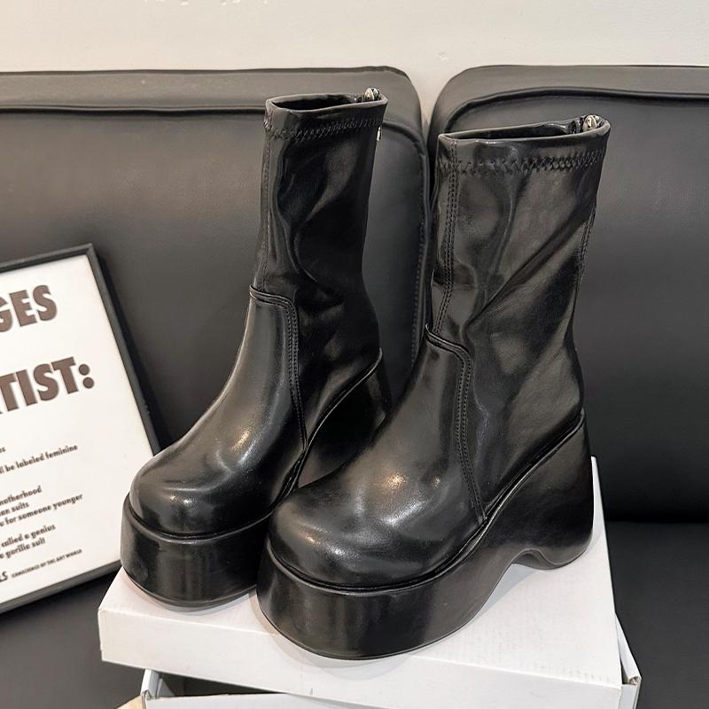 High Heels Ankle Women's Boots Wedges Designer Platform Shoes Goth Walking Chelsea Boots New Leather Elegant Ladies Boots