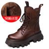 Women Genuine Leather Short Boots Round Toe Motorcycle Boots Handmade Retro Street Style Winter Warm Fur Women Flats Ankle Boots
