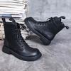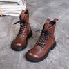 Women Genuine Leather Boots Chunky Platform Square Toe Side Zipper Ankle Boots For Women Winter Warm Lace-up Shoes