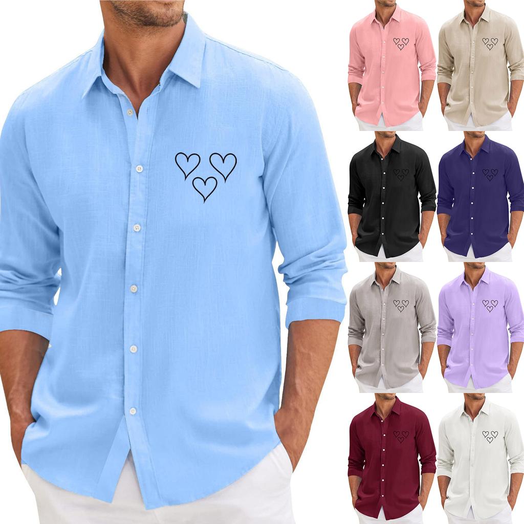 Men'S Casual Loose Fitting Long Sleeved Shirt Fashionable Lapel Shirt Top