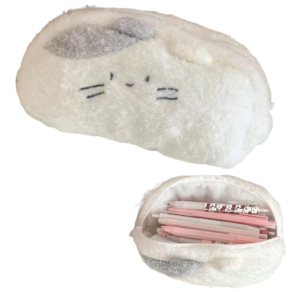 Merrytime Animal Pencil Case, Stylish, Cute, Plush, Makeup Pouch, Perfect for Girls, Elementary, Middle, High, and College Students, White