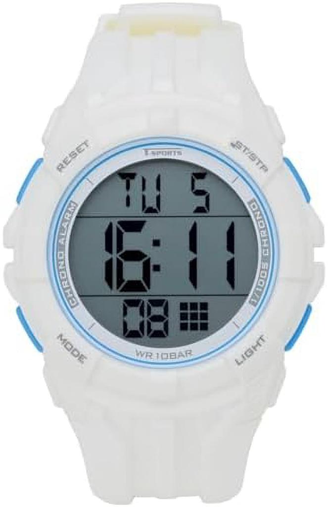 Klefer TS-D317-WT Men's White Digital Sports Watch with Waterproof Backlight, Date Display, Day of the Week Display, and Urethane Strap