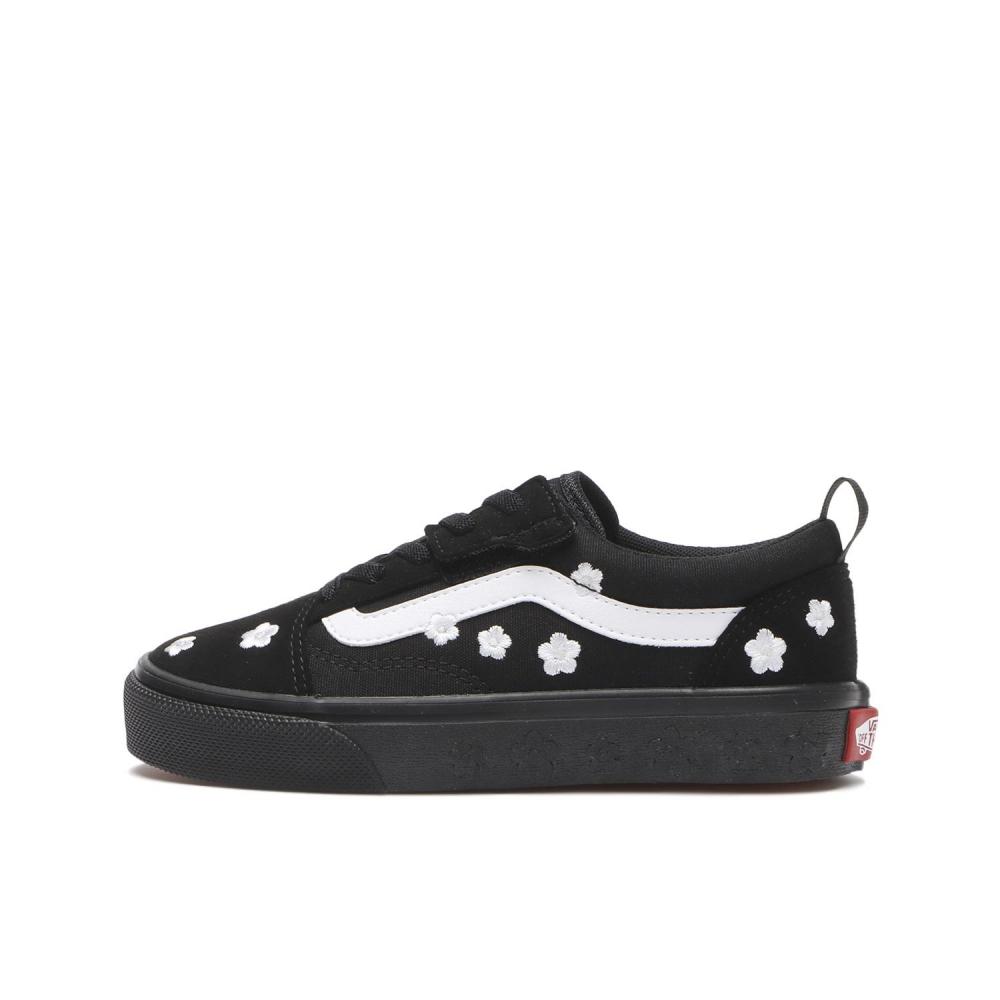 The VANS Old School BLK/BLK/FLW V36PS EB.FLW is a low-cut sneaker highlighted by its iconic side stripe. The combination of black suede and canvas provides a luxurious texture along with exceptional durability. Made using traditional vulcanization methods, the rubber outsole ensures excellent grip. Designed with a sole thickness of about 1.5cm and a heel height of 2.0cm for a soft and stable fit. Its lightweight design weighs approximately 320g, providing comfortable wear.