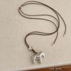 Minar Funny Smooth Surface Metallic Cartoon Horse Flower Pendant Necklaces for Women Long Adjustable Wax Rope Chain Chokers