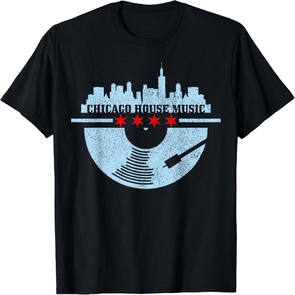Chicago House Music DJ Raver Vinyl Skyline Retro Vintage T-Shirt