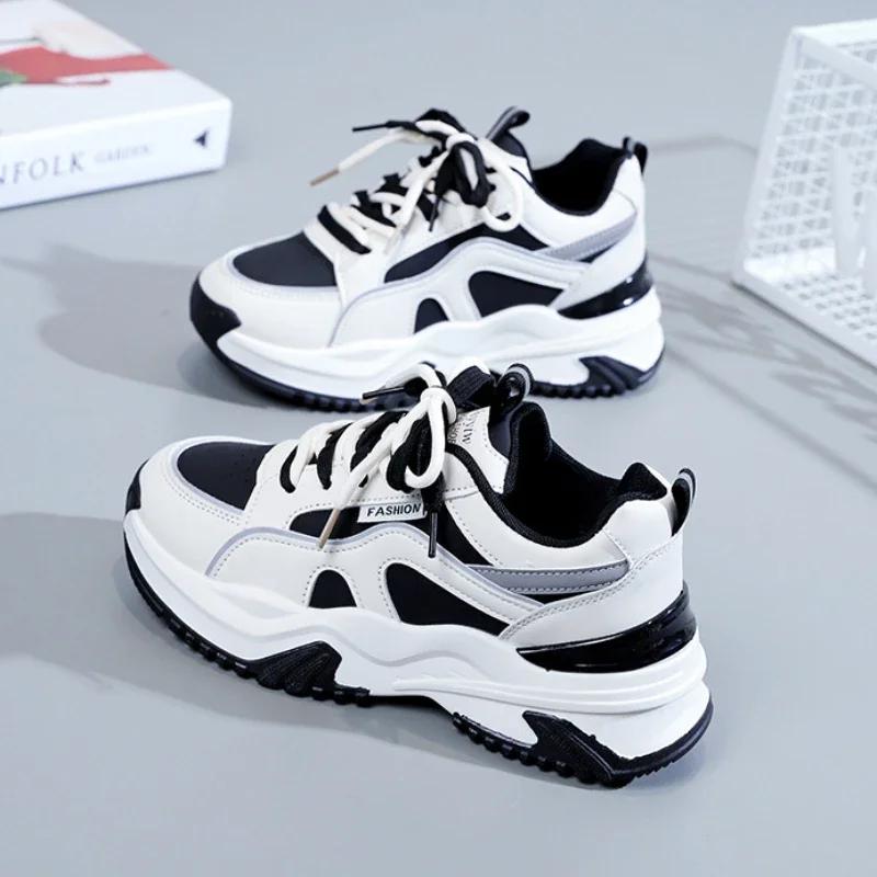 Platform Womens Vulcanized Shoes Breathable Women Sneakers Lace-up Ladies Casual Shoes Classic Chunky Women Shoes Tenis De Mujer