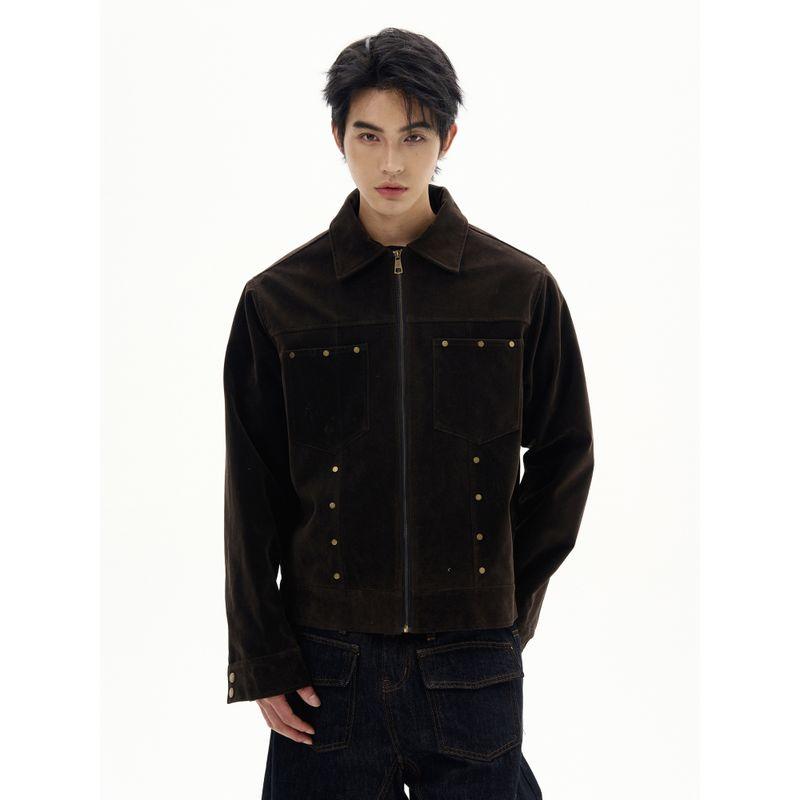 Kisko American Retro Suede Studded Lapel Jacket for Men and Women, Handsome Trendy Brand Loose Casual Jacket for Couples